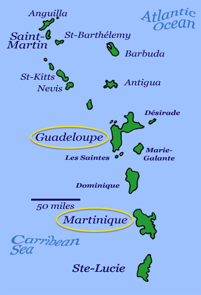 | Martinique & Guadeloupe on the map [Google] |