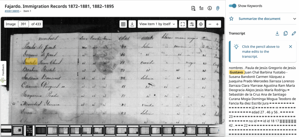 Using Gustave’s name, I was able to use the Full Text search tool and find some documents related to my ancestors. From the result below, you can see that the Full Text search picked up on “Gustavo” though written as “Gustabo”.
