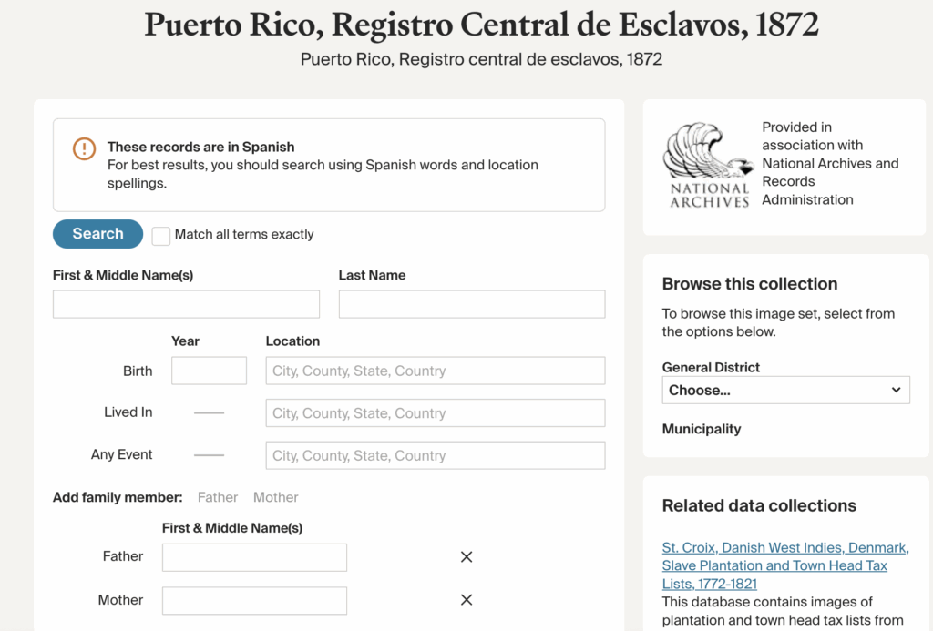 I located a baptism record that shows my 7th great-grandmother being negra libre. She and her husband a few years later would move to Arecibo.