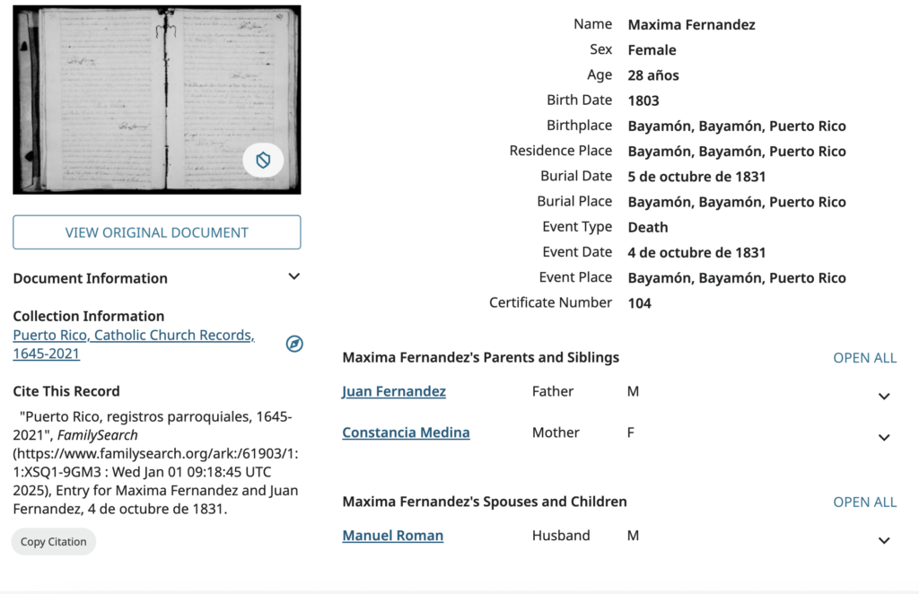Seven years ago, I wrote about the marriage that occurred between my 4th great-grandmother, Dorotea Ramos Martínez, and her husband Manuel Ruiz Soto on 19 July 1860 in Maunabo, Puerto Rico. I was not a descendant from Manuel, but from her first husband Tomás Ruiz. Nonetheless, I found this marriage interesting because there was a […]