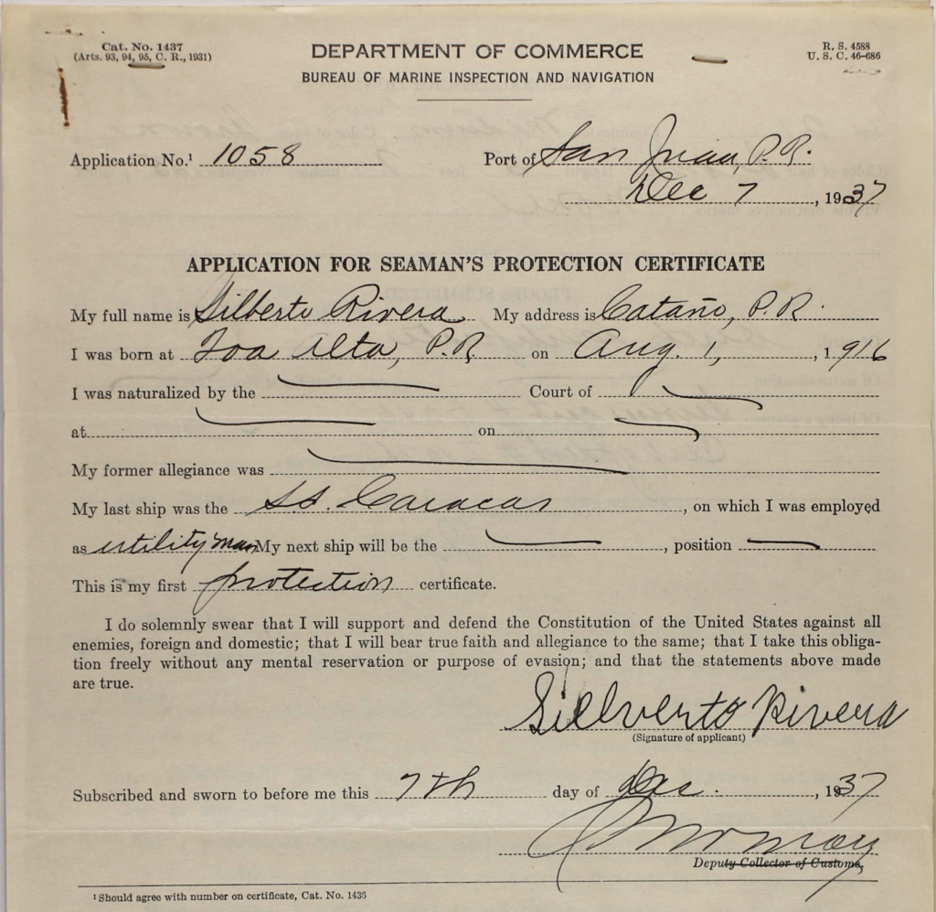 A Puerto Rican Look at: Applications for Seaman’s Protection Certificates