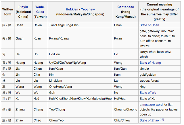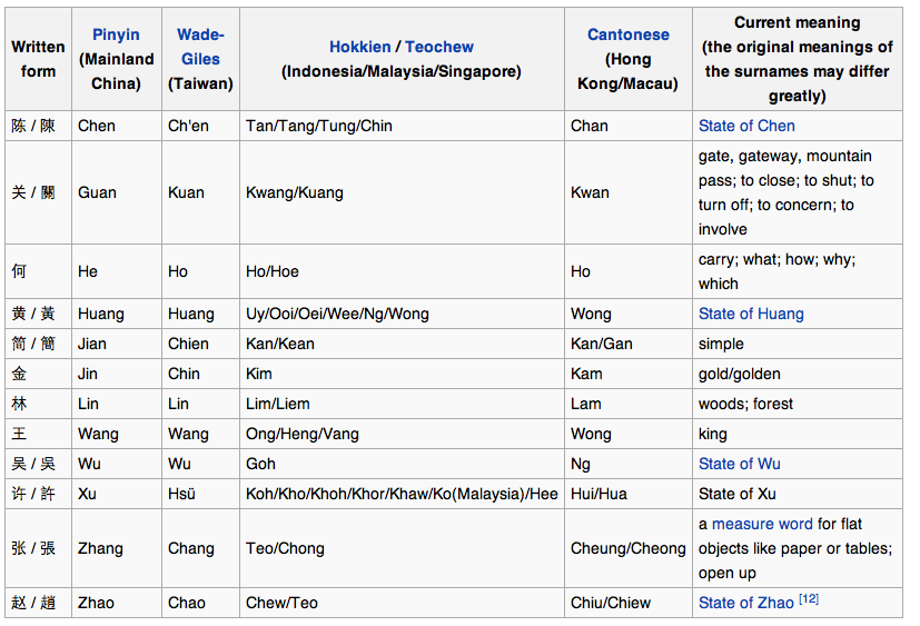 Now his mother’s surname isn’t as easy to crack I would say! In regular Mandarin romanized spelling, the “C” is used to mark a “TS” sound. So a word like (菜) meaning “dish” would be romanized to “cai4” though its actual pronunciation would be “tsai”. I doubt they knew this in Puerto Rico at the time and so we can deduce that his mother’s surname was pronounced “Kan” rather than “Tsan”. Which now presents to us a problem, is the surname similar to “yon” having potentially dropped a “g” therefore leaving us with “kang” or is it still “kan”. Both surnames can be found in Chinese, and looking at this table below we can see again a Hokkien and even Cantonese influence on the surnames.