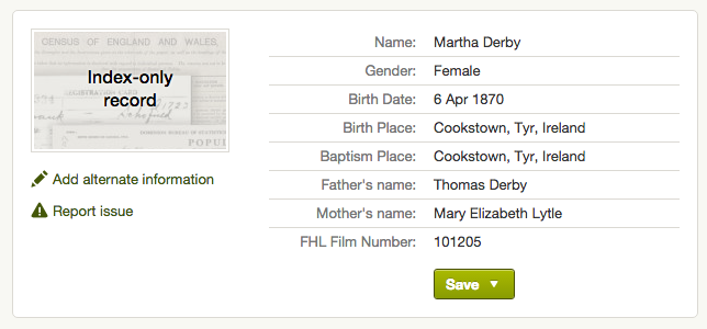 | Irish Baptism – Mary Derby, 1870 [Ancestry] |
