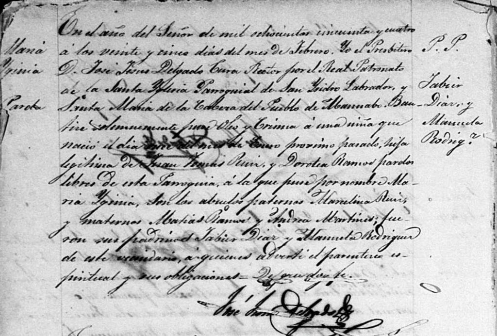 Though no clear relationship has been established, it is clear that Tomás Ruiz and Manuel’s family had a connection. How do we know this? Because Tomás appeared as a godfather with Dorotea Ramos in 1855 for Juana Ruiz’s child. Juana Ruiz was listed as the daughter of Julián Ruiz and Ramona Soto.
